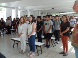 El acto contó con la presencia de la jefa distrital de Educación, Soledad Moreno, el director de Formación profesional De la provincia, Andres Contreras, , asesores Esteban Chiarle, Mario Rico, , supervisoras Julieta Burgueño, cecilia ALÑvarez y Elsa Maqria Guillemro, además de la director de Educación, MAriela Celleribo y los consejeros Escolares, Silñvina Jensen. Paula Arguello, Ely Ortega, y Jesica Arce, docentes, alumnos y autoridades de la institución.