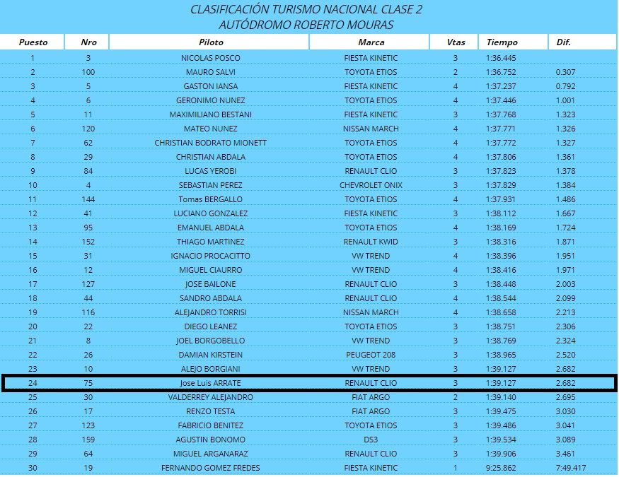 En tanto Arrate cuidando un poco su auto para la jornada de este miércoles y sin arriesgar de más puso al Clio en el 15° al cruzar la meta en zona de puntos para el campeonato que al momento lo ubica en el 20° lugar ascendiendo 2 lugares respecto a cómo llegó antes de ese regreso.