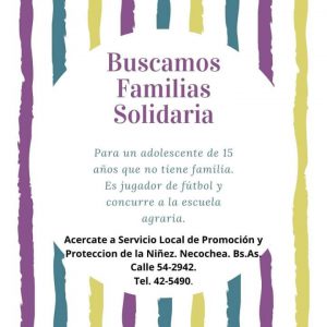 La convocatoria fue lanzada por el Servicio Local de Promoción y Protección de la Niñez. Se trata de un niño de 15 años, que no tiene familia y, según describen, es jugador de fútbol y concurre a la Escuela Agraria.