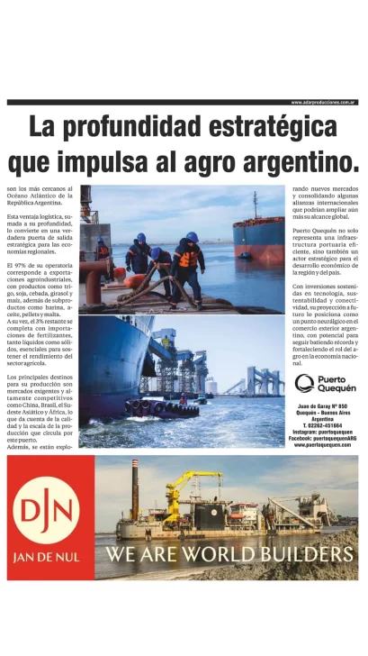 La profundidad estratégica que impulsa al agro argentino es el título de la nota que publicó el diario Clarín que describe las aptitudes operativas del tercer puerto más importante de Argentina en la exportación de agro graneles.