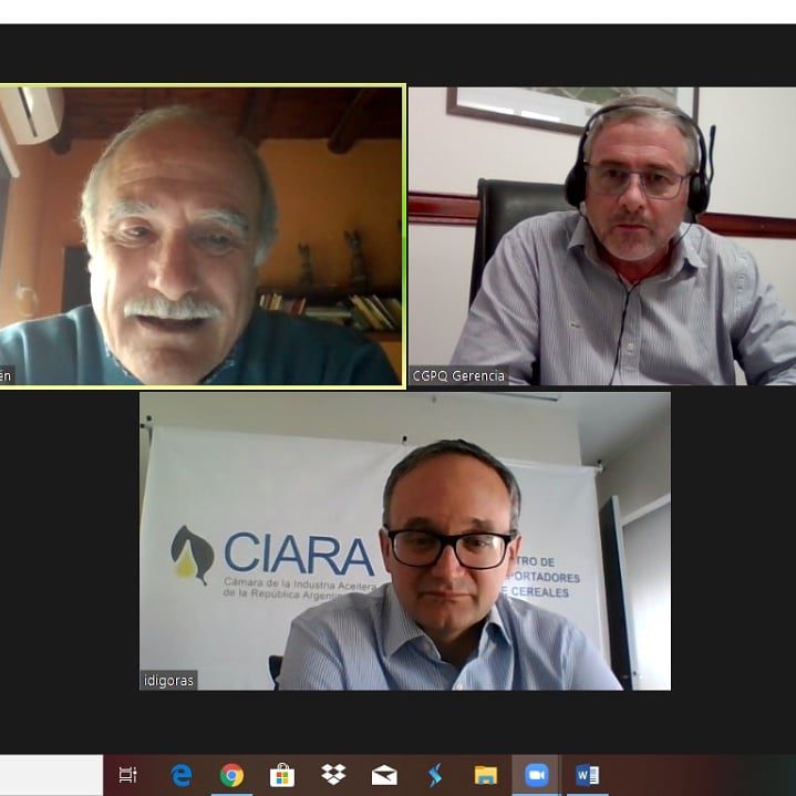 El Presidente del Consorcio de Gestión de Puerto Quequén, Jorge Alvaro, mantuvo una reunión online con el Presidente de la Cámara de la Industria Aceitera de la República Argentina y el Centro de Exportadores de Cereales (CIARA-CEC), Gustavo Idígoras.