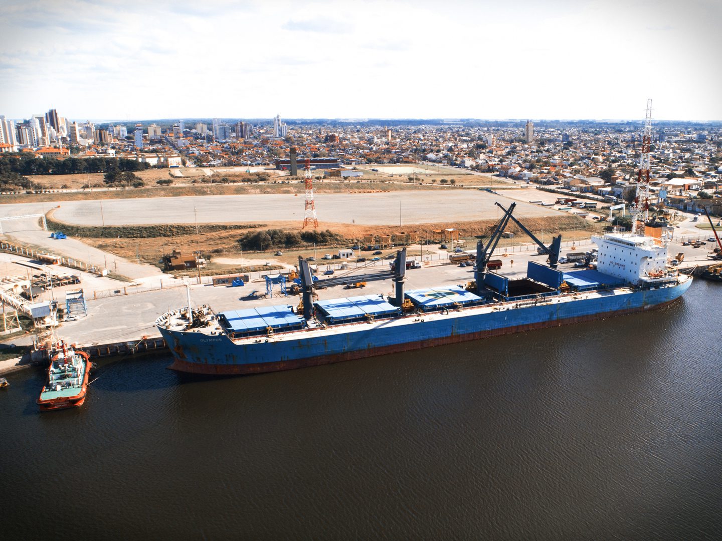 También sobre la margen Quequén, en los sitios 4/5 y 6, los buques MYRA y GEM STAR cargan 54 mil y 14 mil toneladas de cebada hacia China y Colombia respectivamente. Mientras que sobre la margen Necochea, en el giro 10, se realiza la descarga de 12.815 T de fertilizantes Map/Dap desde el buque OLYMPUS.