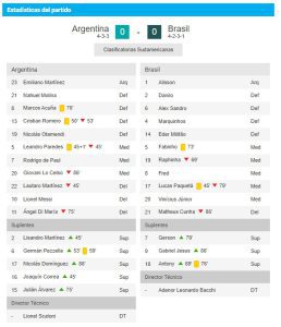 Ese dominio del potrero por sobre el jogo bonito no fue solo por el ímpetu de los nuestros, sino también por el extremo respeto que los brasileños le tienen a esta Selección. La esperaron porque sabían que si iban al golpe por golpe, iban a salir perdiendo. La final dela 10 de julio en el Maracaná todavía está en sus cabezas. Y se notó. También es cierto que Argentina sufrió con alguna contra que definió mal Vinicius. Fred fue el reloj de los visitantes. En contrapartida, Paredes (titular) no fue parte de la conexión de juego y Di María, muy tirado por la derecha, aportó un lujo. Justo contra ellos…