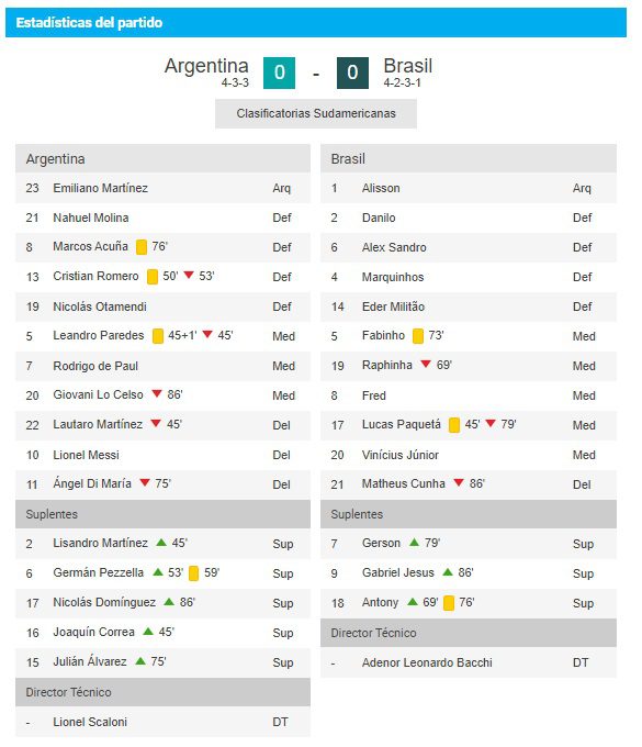 Argentina igualó sin goles contra Brasil en un partido picante. Luego, festejó por haber llegado a Qatar 2022 gracias a la derrota de Chile. Además, la Scaloneta suma 27 partidos sin derrotas.