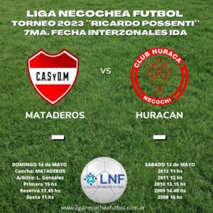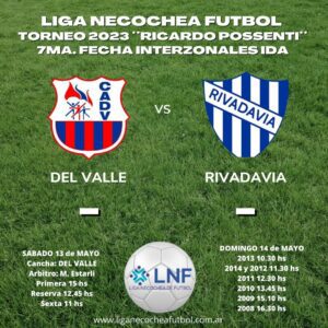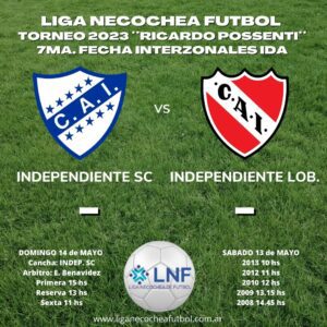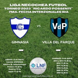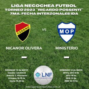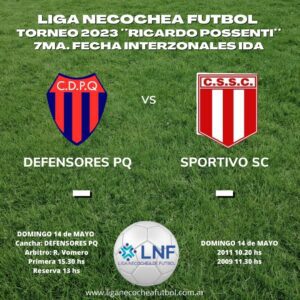 La Liga Necochea de Fútbol informó que mañana se pone en marcha la séptima fecha del torneo de fútbol Ricardo Possenti. Así será la hora y lugar de los encuentros: