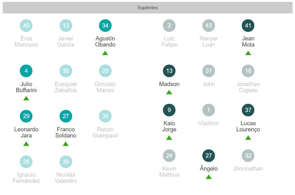 Boca: Agustín Rossi; Nicolás Capaldo, Lisandro López, Carlos Izquierdoz, Agustín Sandez; Agustín Almendra, Cristian Medina, Alan Varela; Sebastián Villa, Carlos Tevez y Cristian Pavón. DT: Miguel Ángel Russo.