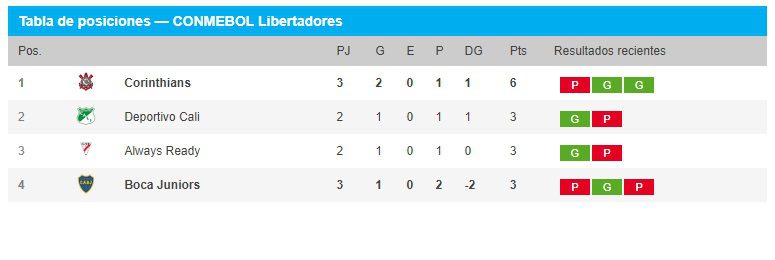 Probablemente el resultado luce más holgado que lo que denunció el desarrollo. Fue un castigo para un Boca que, sobre todo en los 45 minutos, se quedó con la posesión, pero no supo qué hacer con ella. En cambio, el Corinthians, más pragmático, supo hallar los caminos hacia la victoria y hoy luce como el líder de la Zona con seis unidades. Detrás vienen Always Ready, Deportivo Cali (ambos con dos duelos, se enfrentan el jueves) y Boca, por el momento, último.