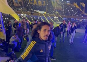 El delantero uruguayo Edinson Cavani fue presentado, ante los socios, como nuevo jugador de Boca Juniors en el Estadio La Bombonera junto a Jorge Amor Ameal, presidente del club, y a Marcelo Delgado, integrante del Consejo de Fútbol.