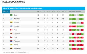 La próxima jornada de la selección argentina será con un viaje a Guayaquil para enfrentar a Ecuador en la 18ª fecha de las Eliminatorias, ya con los cuatro primeros lugares de la tabla de posiciones definidas: Brasil, Argentina, Ecuador y Uruguay irán de manera directa a la Copa del Mundo. Perú, Colombia y Chile pujarán por el espacio del repechaje.