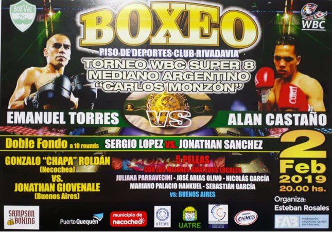 La propuesta de esta velada serán dos combates a diez asaltos por cuartos de final entre Alan Castaño quien se halla invicto y Francisco Torres, y entre el de la provincia de Buenos Aires Sergio López y Jonathan Wilson Sánchez de Chubut, conformando así las peleas de fondo de la jornada,