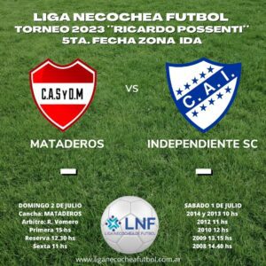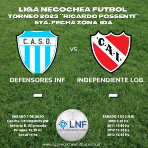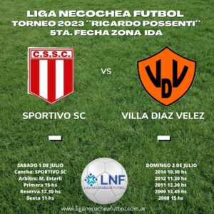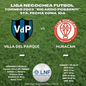 La Liga Necochea de Fútbol informó los horarios de los encuentros de este fin de semana en el marco de la 5° fecha, zona ida, del torneo de fútbol Ricardo Possenti.