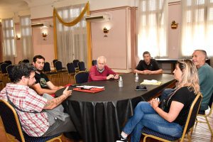 Autoridades municipales se reunieron con los referentes de cuatro clubes que serán beneficiados con la llegada de los nueve playones deportivos que el intendente Arturo Rojas gestionó en los ministerios nacionales.