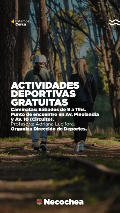 La Secretaría de Turismo y Desarrollo Productivo, a cargo de Matías Sierra, informa que a través de la Dirección de Deportes se realizan actividades gratuitas al aire libre, ideales para disfrutar de Necochea y destinadas tanto a residentes como turistas.