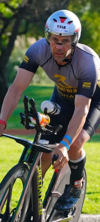 Prosiguió relatando que “de la bici me bajé con el noveno mejor parcial cumpliendo 2 horas 12 minutos para los 90 kilómetros, a un promedio de 41 km/h e hice la transición donde nos bajamos de la bici y nos cambiamos para correr, y la media maratón fue bastante dura para mí porque hice mucho esfuerzo en la bicicleta y lo pagué en la corrida, donde perdí varias posiciones y me ubiqué 20º en la general y salí 2do en mi categoría, que es de 40 a 45 años”.