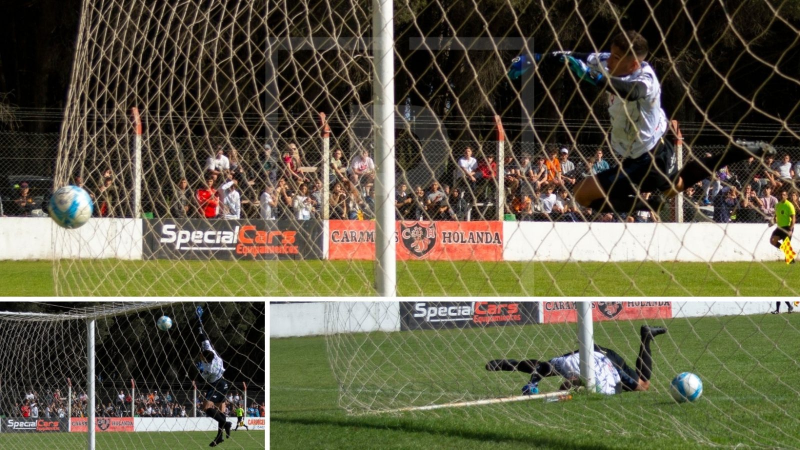 La visita no encontraba el camino al gol, se sentía incomodo, pero generaba juego lateralizando el traslado de la pelota, aunque en un entrevero en la mitad de la cancha la ganó Díaz Vélez y sin dudarlo demasiado Gonzalo Fuhr, que le quedó al pie, vio adelantado al arquero “chimango” y a contra sol aprovechó la situación rematando desde la mitad de la cancha en una parábola que ingresó limpiamente por encima de Facundo Charmelo que nada pudo hacer a pesar de estirarse en un acrobático salto.