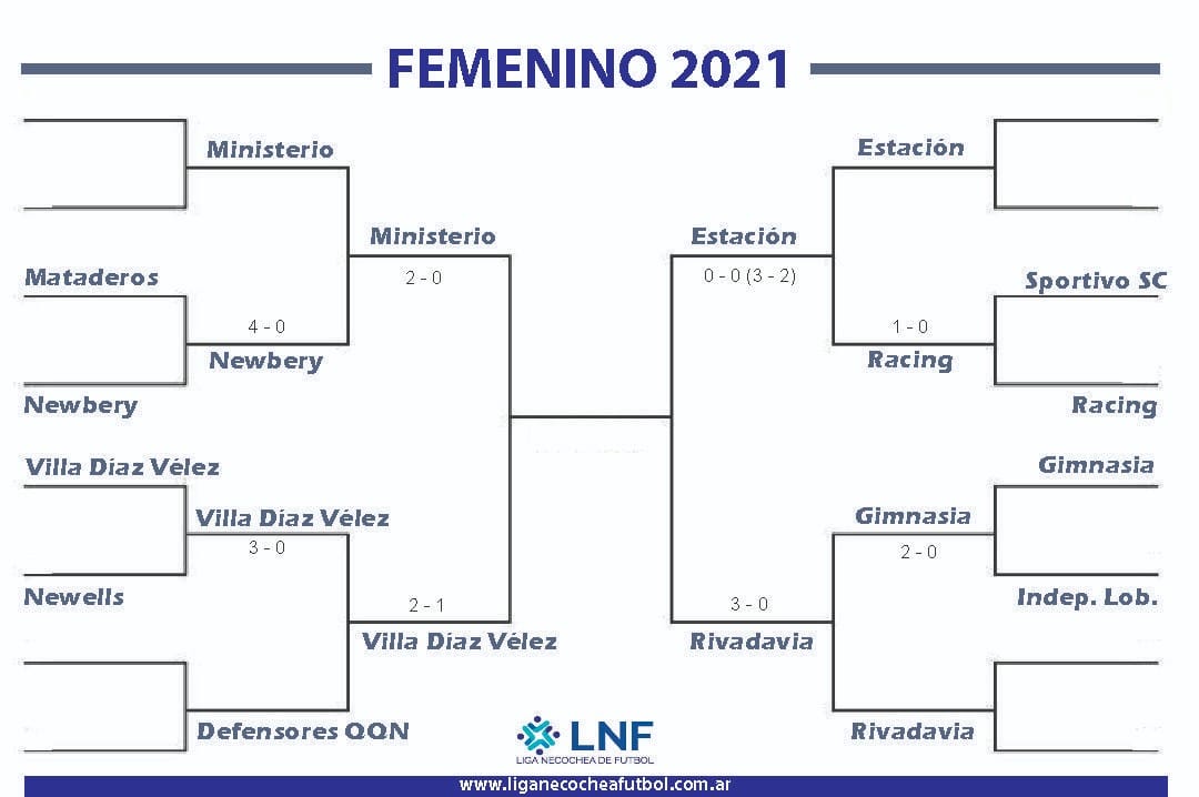 Sin escenario ni horario confirmado aun, los cruces para la siguiente fase son Ministerio ante Villa Díaz Vélez y Estación frente a Rivadavia. De estos cuatro equipos saldrán las finalistas que pugnan por el cetro de la Liga Necochea de Fútbol.