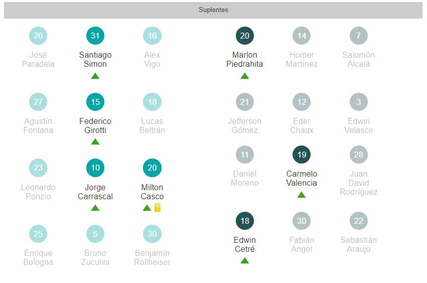 Junior: Sebastián Viera; Fabián Viáfara, Dany Rosero Valencia, Willer Ditta, Gabriel Fuentes; Didier Moreno, Larry Vásquez, Fredy Hinestroza, Luis González; John Pajoy y Miguel Borja. DT: Luis Amaranto Perea.
