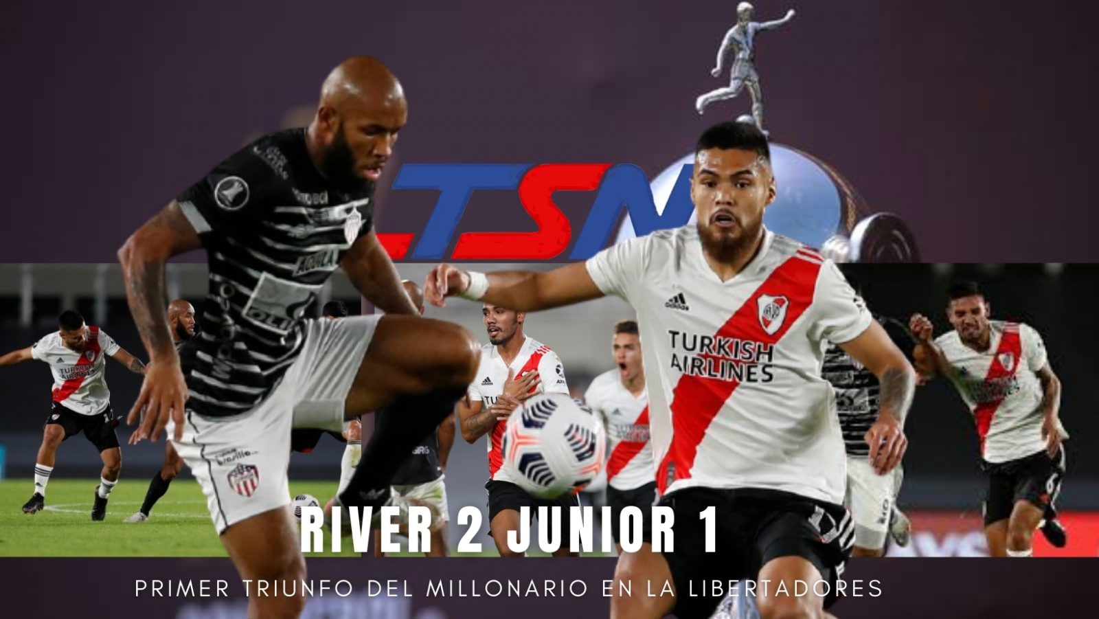 River resolvió un partido difícil y cosechó su primera alegría en la presente edición de la Copa Libertadores: derrotó 2-0 a Junior de Barranquilla gracias a los goles de Héctor David Martínez y Julián Álvarez y se acomodó en la cima del Grupo D, con cuatro unidades, igual que Fluminense. Mauricio Borja descontó para la visita.