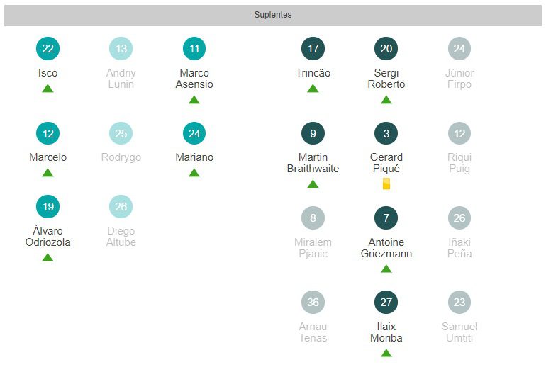 El brasileño Marcelo, recambio de Zidane para el Real, probó desviado desde afuera del área justo antes de que Jordi Alba madrugara al rival en un peligroso pase hacia atrás y punteara el balón antes de que llegara Courtois: su intento no fue direccionado al arco y más tarde Braithwaite simuló un penal de Mendy que no existió.