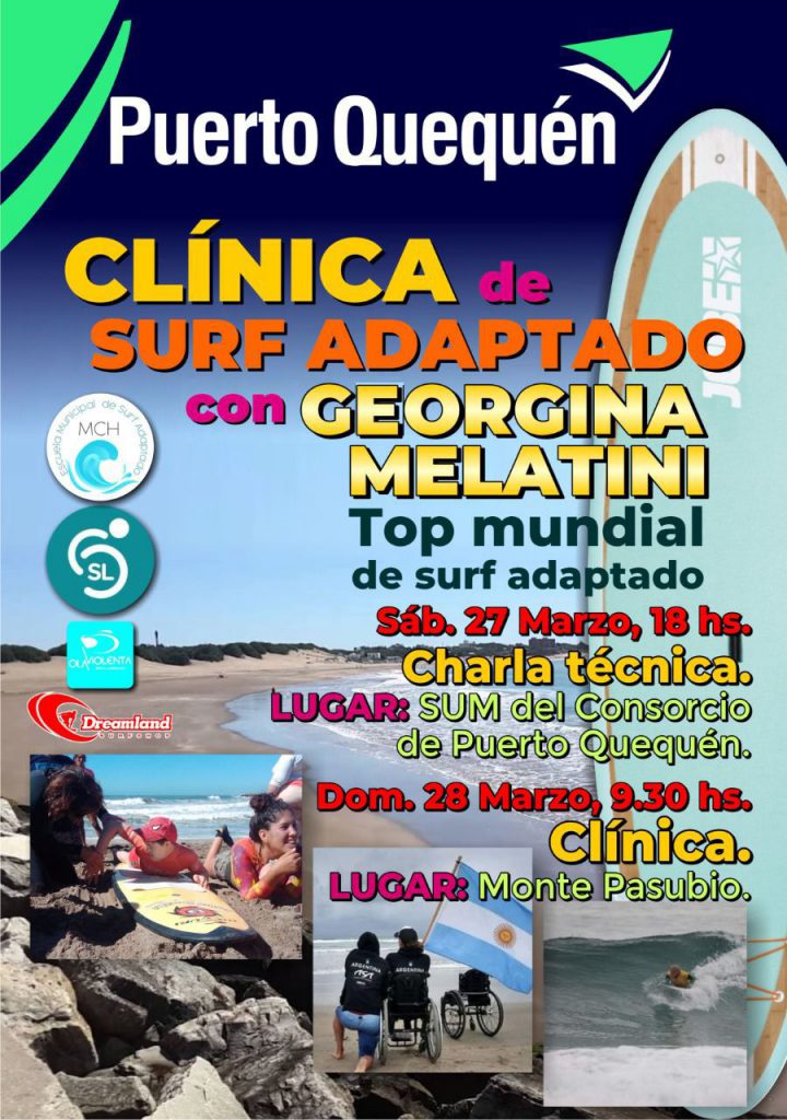 Con esta oradora de lujo que tendrá la clínica, el sábado tendrá su primer contacto en el Salón de Usos Múltiples del Consorcio de Gestión de Puerto Quequén en Juan de Garay al 850 a la hora 18 donde se introducirá a este deporte adaptado a los profesores de educación física y entrenadores como así también a las diferentes escuelas de surf exclusivamente por una cuestión de espacio, mientras que el domingo a las 9,30 será abierta a todo el público en el complejo Monte Pasubio de Avenida 502 al 1160 de la ciudad de Quequén.