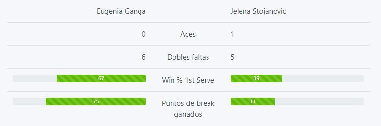 Los anteriores triunfos de Ganga fueron ante Noelia Bouzo Zanotti: 6-0, 6-2; Agustina Chlpac: 6-3,1-6,6-1; Julieta Lara Estable: 6-1, 6-3.