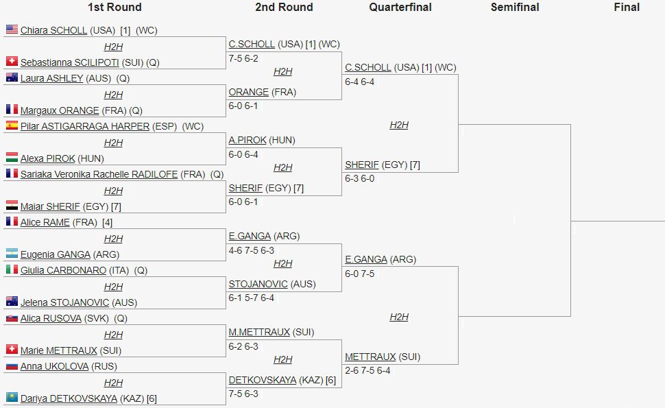 Para hoy viernes a la necochense le tocara enfrentar a la suiza Marie Mettraux en el Court 5 antes del mediodía tunecino (+4 horas de diferencia, GMT+1) aproximadamente a las 16 horas de Argentina.