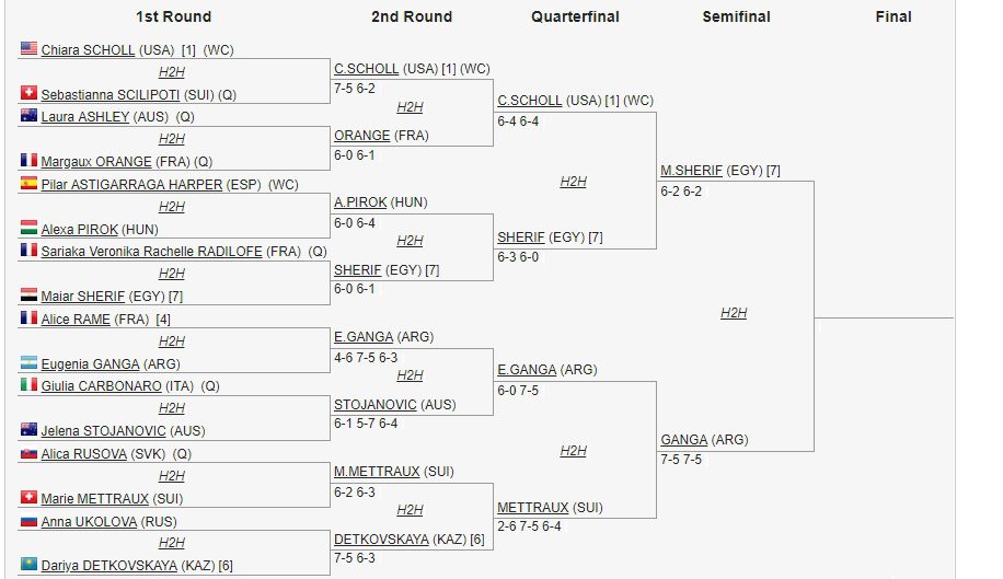 De superar a la egipcia, en la otra llave están la alemana Lena Lutzeier y la chilena Bárbara Gatica, esta última con quien debía enfrentarse la semana pasada en otro torneo al cual ambas habían llegado a las semifinales pero fuera cancelado debido a las intensas lluvias.