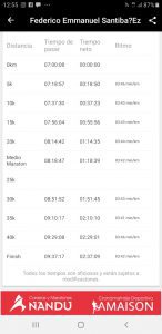 El atleta del team FG Runner’s tuvo una gran preparación que no dejó nada librado al azar, tal es así que hasta en la línea de largada todo estuvo planificado al detalle para que no hubiera sobresaltos, llegando media hora antes a la salida para posicionarse bien adelante (Por detrás de los élite)y acomodarse en el primer lote de la salida para evitar los típicos tapones y pérdidas de tiempo hasta que la masa comienza a separarse, eso es tener un plan y una buena manera de planificar una carrera desde su génesis.