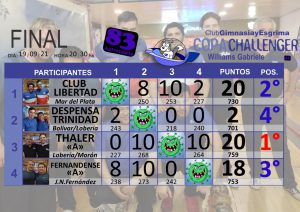 Quienes alzaron la copa de Campeón en este 83° aniversario del club Gimnasia fueron la pareja conformada por Oscar Figueroa y Matías Sánchez de Morón llevándose el trofeo Challenger Williams Gabriele hasta la próxima edición.
