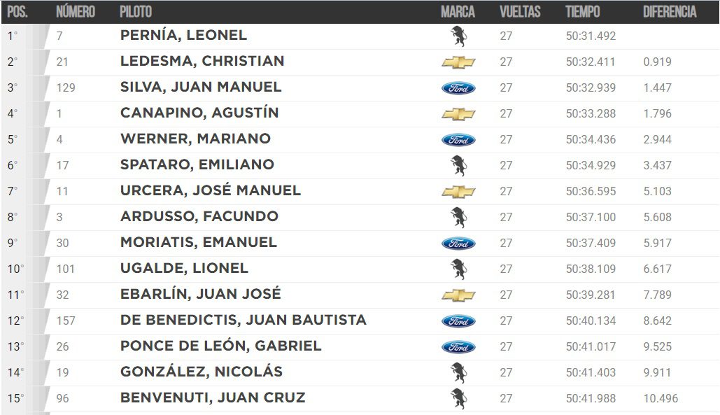 En el décimo segundo giro debió ingresar al auto de seguridad por el abandono de Alan Ruggiero y del entrerriano, Nicolás Bonelli. Nada varió, luego del relanzamiento, en los puestos de vanguardia.