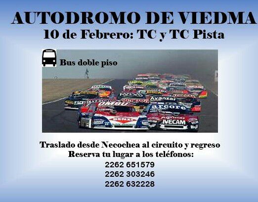A tal efecto desde la Terminal de ómnibus local de Avenida 58 y Jesuita Cardiel saldrá un colectivo para asistir el domingo 10 para la primera fecha del TC y TCP.El traslado al autódromo tendrá un costo de 2000 $, no incluyendo el valor de la entrada que puede sacarse en el lugar mismo teniendo un valor de 300 $.
