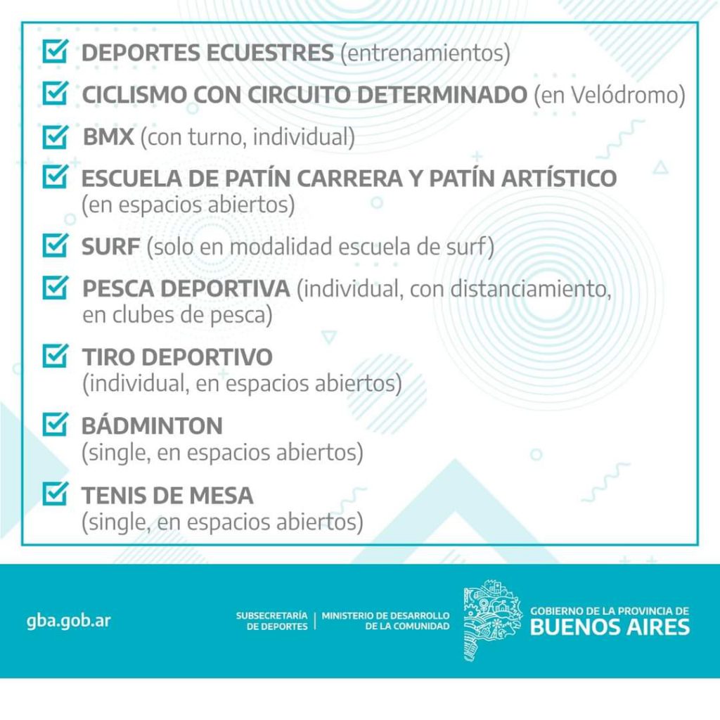Con la firma del jefe de Gabinete, Carlos Bianco, se “autoriza en el ámbito de la provincia de Buenos Aires, a partir del día 24 de agosto de 2020, la práctica de deportes individuales, incluyendo todos aquellos que se encuentran listados en el Anexo I”, detalla el Boletín.