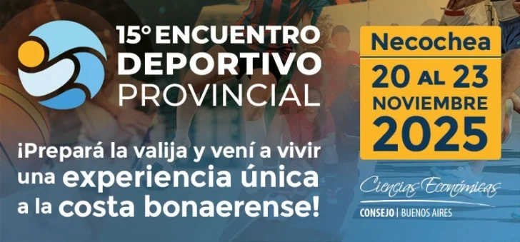 Del 20 al 23 de noviembre, la ciudad de Necochea será sede del 15° Encuentro Deportivo Provincial del Consejo Profesional de Ciencias Económicas de la Provincia de Buenos Aires, un evento que reunirá a profesionales de toda la provincia y el país en torno al deporte, la camaradería y el disfrute de nuestro entorno natural.
