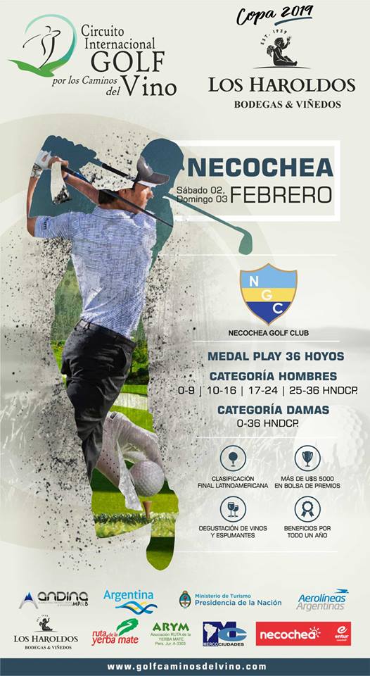 El lanzamiento Oficial del Calendario Nacional De Golf “Por los Caminos del Vino – Copa Bodega Los Haroldos 2019” tendrá lugar mañana viernes a las 11 en las oficinas del Ente Necochea de Turismo (ENTUR) de la Villa Balnearia en Avenida 2 y 87 donde los organizadores brindaran una conferencia de prensa con la presentación del torneo y una degustación de sus vinos al culminar la misma.