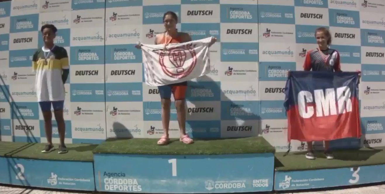 La nadadora del club Huracán Guadalupe Angiolini logró esta mañana la medalla de oro en su primera participación del Campeonato Nacional de Natación de la República 2020 “Harold Barrios” para Infantiles y Menores en la provincia de Córdoba donde se halla junto a su compañera de equipo además de también estar en la cita 6 nadadores de la Asociación Deportiva Arenas.