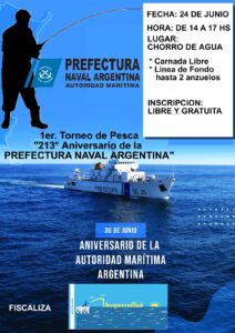 Prefectura Quequén informó que realizará un torneo de pesca con motivo de celebrar los 213 años de la institución.