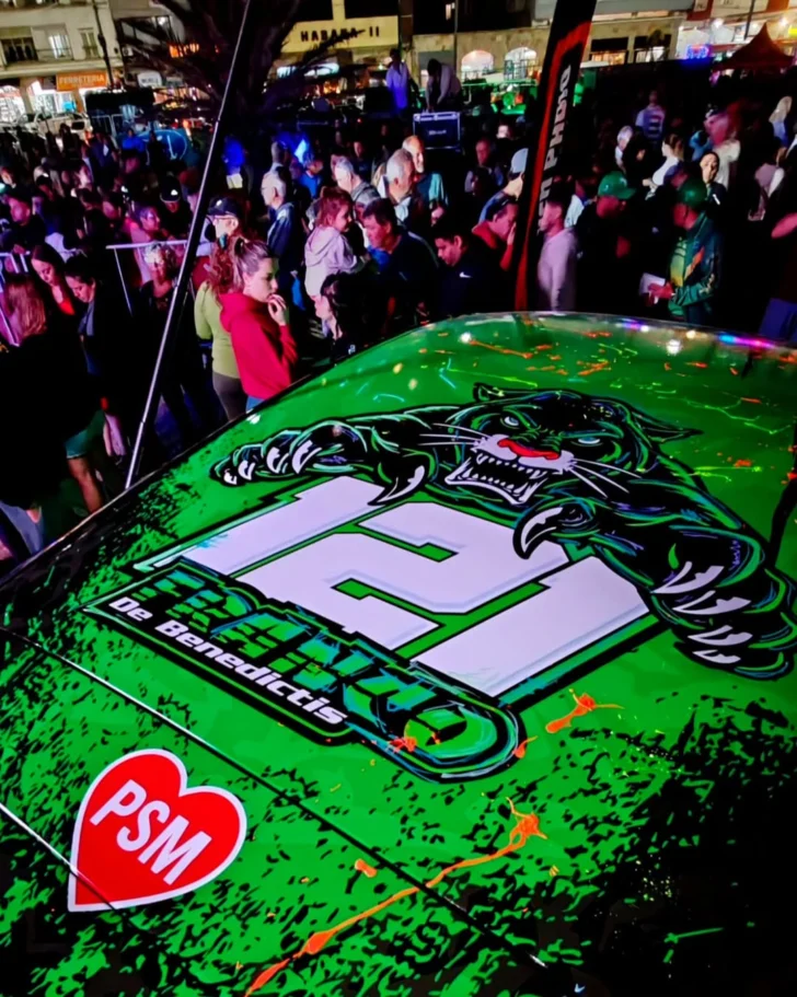 Acerca de lo que fue la presentación del auto en Necochea ante una multitud, Franco resaltó que “fue una noche especial. Una noche solidaria”, haciendo alusión a lo destinado a la cooperadora del Hospital Municipal “Dr. Emilio Ferreyra”, y destacó: “Gracias a TODO el público que se acercó a ayudar a la Cooperadora del Hospital. Escuchar buena música y el motor del 121 que nos va a acompañar por todo el país. Con una pantera y un corazón en el techo”.
