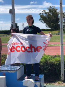 Le siguió muy cerca Ailen Pereira, quien secundó a su compañera de la Escuela Municipal de Atletismo logrando el subcampeonato en la distancia logrando un resultado histórico para el atletismo local en una cita provincial logrando arribar en 13´40´´.