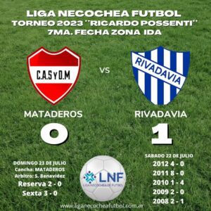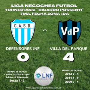 La Liga Necochea de Fútbol informó los resultados de los encuentros de este fin de semana del fútbol local, en el marco de la 7° fecha de la zona ida del torneo Ricardo Possenti: