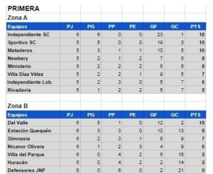 Quien venia en la misma condición con puntaje óptimo era Del Valle en la otra zona, la B, pero el sábado se enfrento ante el “Decano” Rivadavia en el Panamericano y el conjunto de aguas corrientes detuvo su marcha y le significó su primera caída en el torneo. Fue por la mínima con gol de Kevin Ortueta.