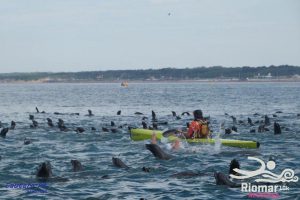Los mamíferos que acompañan, curiosos a los nadadores, son todo un espectáculo y la proximidad hacia los nadadores hace que estos provoquen cierto temor. Si bien no se han reportado ataques ya que son animales pacíficos y calmados, no dejan de ser salvajes por lo que se deben tomar ciertos recaudos puesto que si se acercan demasiado a la escollera misma donde moran sus crías, que nacen en enero, las hembras podrían sentirse amenazadas, lo mismo ocurre con los machos que defienden su territorio y a su harem de 4 o 5 hembras.