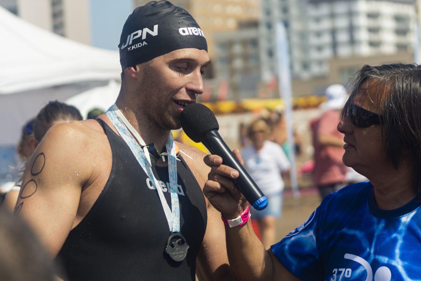 “Fue una carrera normal, con una largada muy limpia, con 550 participantes y en menos de una hora y media todos los corredores estaban girando en la escollera Sur”, […] “en el caso de Ezequiel Bermejo estaba acompañado por un amigo en un kayak”.