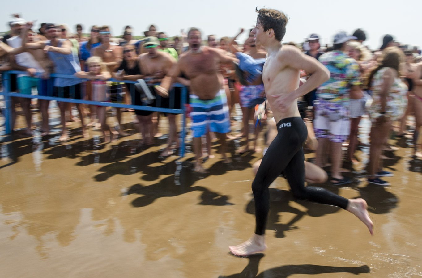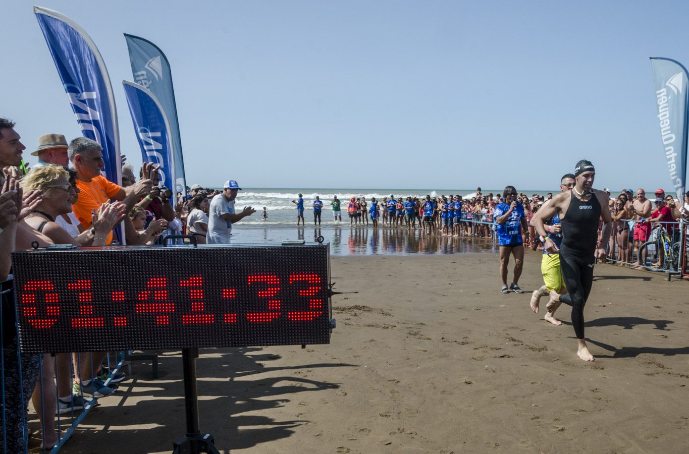 Para la altura del puente Dardo Rocha el de Mar del Plata ya se había aventajado por 400 o 500 metros por sobre el segundo donde la lucha por la plata y el bronce era más pareja. En el puerto ya, Cassini entraba al mar con una amplia diferencia que superaba los mil metros y parecía acelerar aún más su velocidad que imprimía con su larga humanidad de más del metro noventa, largos.