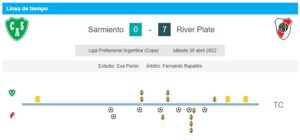 En el complemento, y pese a los cambios que hizo Damonte con los ingresos de Gervasio Núñez y Lisando López, River Plate continuó con su show. Enzo Fernández y Esequiel Barco marcaron tras dos grandes jugadas colectivas y antes de los 10 minutos el marcador ya era de 5-0.