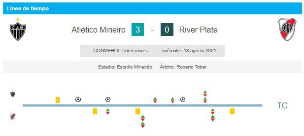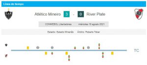River Plate se despertó con un duro golpe del sueño de volver a ganar la Copa Libertadores: fue arrollado por Atlético Mineiro, que se impuso por 3 a 0 en Belo Horizonte (4-0 en el global). Matías Zaracho (en dos oportunidades) y Hulk convirtieron para O Galo, que aprovechó el desequilibrio mostrado por la Banda en su afán por revertir el 0-1 del encuentro de ida. Así, las semifinales del máximo certamen continental se quedaron sin representantes argentinos.
