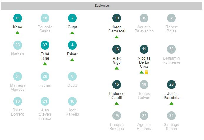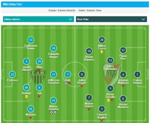 Atlético Mineiro: Everson; Mariano, Nathan Silva, Junior Alonso, Guilherme Arana; Allan, Jair, Matías Zaracho; Jefferson Savarino, Hulk y Eduardo Vargas. DT: Cuca.