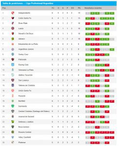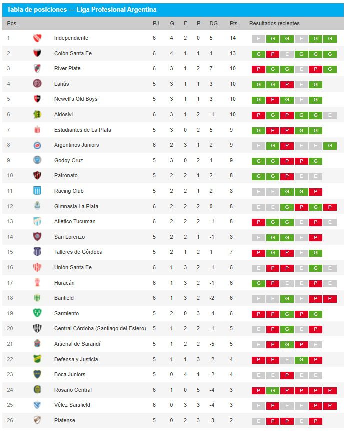 Tabla de posiciones:
