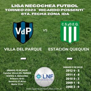 Arranca hoy el cronograma de partidos del fútbol local que fueron suspendidos por cuestiones climáticas el fin de semana pasando en lo que es la 6° Fecha zona Ida de la copa Ricardo Possenti.