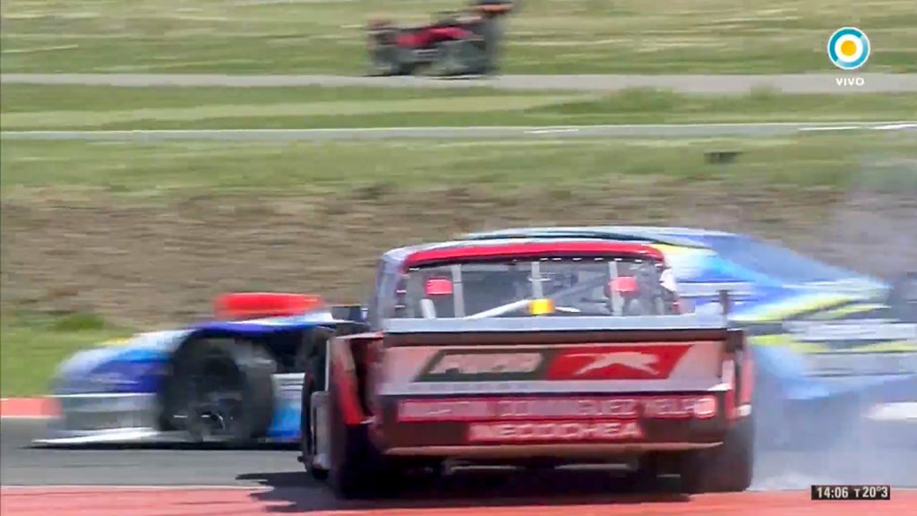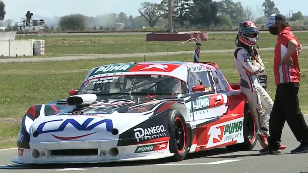 Cuando iba remontando desde atrás otra vez la mala fortuna le jugó una mala pasada cuando en la 12° vuelta cuando intento rebasar a Emanuel Tufaro que estaba por delante, se la jugó por el sector sucio de la pista y no pudo cuando pisó tierra y con medio trompo se fue al pasto literalmente para retornar luego de varios segundos con prácticamente sentenciada toda ilusión de pescar buenos puntos.