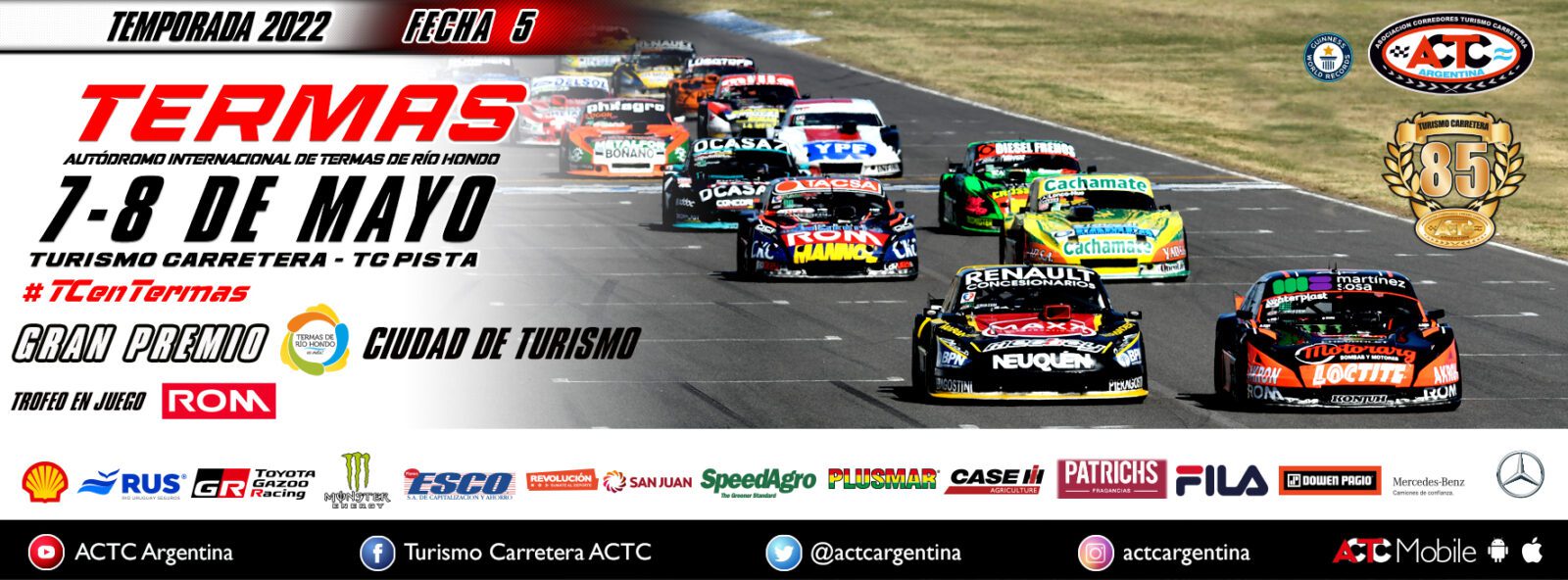 El Turismo Carretera y TC Pista regresan al Autódromo Internacional Termas de Río Hondo, en la provincia de Santiago del Estero, para disputar el Gran Premio Termas de Río Hondo Ciudad de Turismo, que además tendrá en juego el Trofeo ROM. En el mismo estará la presencia de Juan Bautista De Benedictis en la “máxima” y Marcos Castro en la “telonera”.